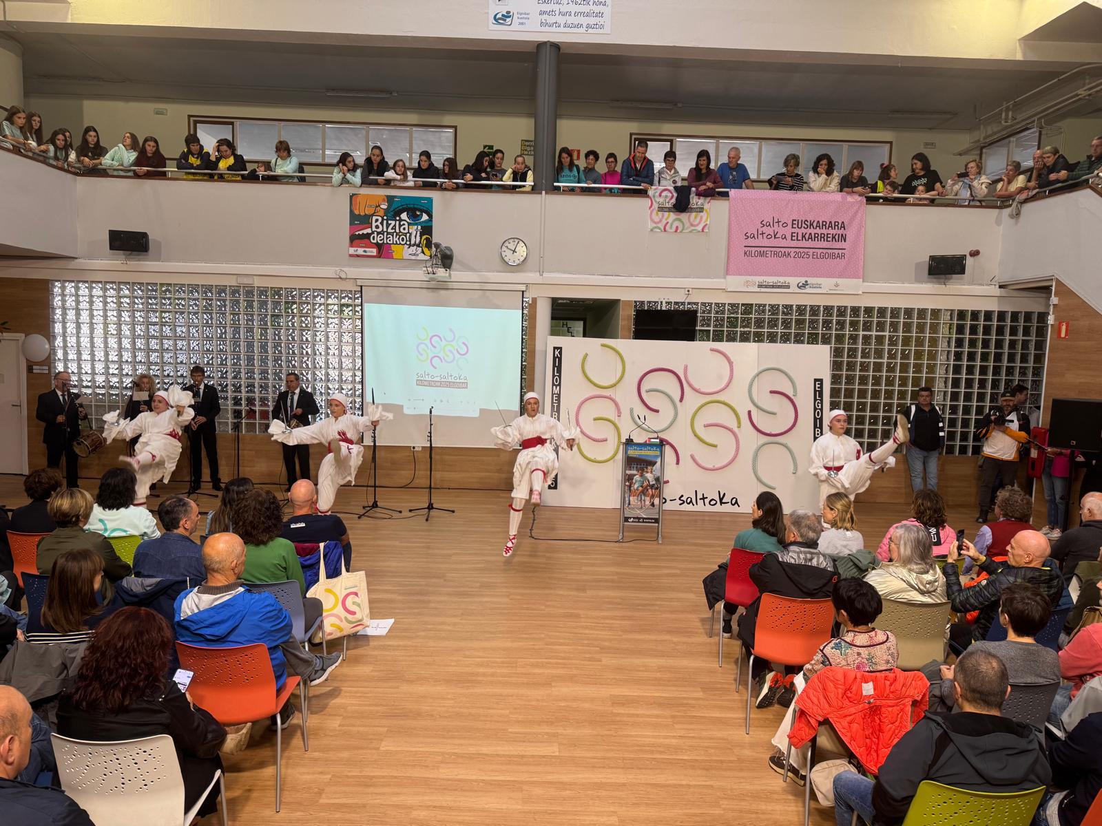 Haritz Euskal Dantzari Taldekoek dantzatu duten ezpata-dantzarekin hasi dute ekitaldi ofiziala, eta Ainhoa Lendinezek, ikastolako ikasle izandakoak, egin ditu aurkezpen-lanak. Ikasle garaiko oroitzapenak partekatu ditu Lendinezek areto bete lagunen artean eta Olatz Astigarraga Ikastolako lehendakariak hartu du gero hitza, Ikastolako komunitate osoari eskerrak emateko eta Kilometroak euskara, elkarlana eta identitatea sustatzeko prozesu baten erakusleiho izateko jaia dela gogorarazteko. Agintariak ere izan dira, jakina, ekitaldi ofizialean. Maialen Gurrutxaga Elgoibarko alkateaz gain, Begoña Pedrosa Jaurlaritzako Hezkuntza sailburua eta Eider Mendoza Gipuzkoako Foru Aldundiko diputatu nagusia ere ekitaldian izan dira, Ikastolaren proiektua babesten, bai eta Aitor Elizaran Kilometroak kultur elkarteko lehendakaria ere. Instituzioetako ordezkarien aurkezpen hitzen ondotik, Eneko Beretxinagaren letrekin eta Aitor Novak konposatutako melodiarekin sortutako kantua dantzatu du ikastolako ume talde batek.
