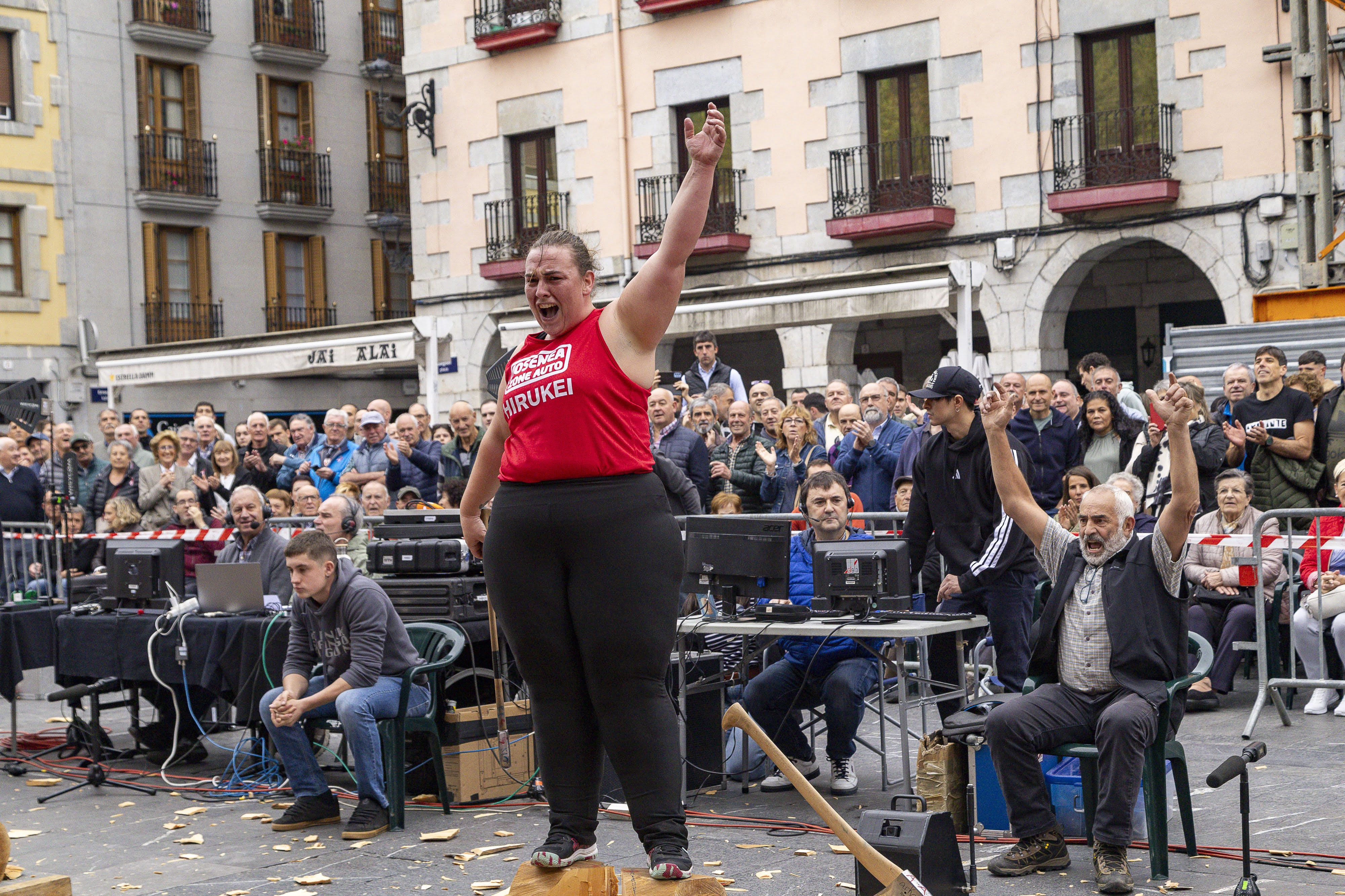 Kalegoen plazan jokatu duten finalean bi oineko enbor ebaki behar zituzten lanei hasteko, eta lehen aizkorakadetatik hartu du aurrea Sorondok. Gero, aldeari eusten asmatu du. 45 ontzako beste bi egur ebagi dituzte ondoren eta bi kana erdiko amaieran. Berako aizkolaria zen lehiakideen artean beteranoena 38 urterekin, eta probaren amaiera aitortu duenez, gazteagoa zenean zuen indarra eta txispa galdu dituen arren, teknika hobeagoarekin ordezkatzen ditu galera horiek. Finalera ondo prestatuta etorri dela azaldu du eta 20 minutu baino guutxiagoan lanak amaitzea zela bere buruari jarrita zion helburua. Lortu ez arren, -20 minutu eta 16 segundoan osatu ditu lanak-, txapela janzteko nahikoa izan da. Sorondok 18 segundoko alda atera dio Arrutiri. Laiene Pikabea sailkatu da hirugarren postuan.