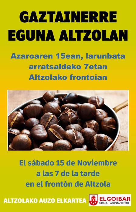 Zapatu iluntzean, berriz, Gaztainerre Eguna ospatuko dute Altzolako frontoian, 19:00etatik aurrera.