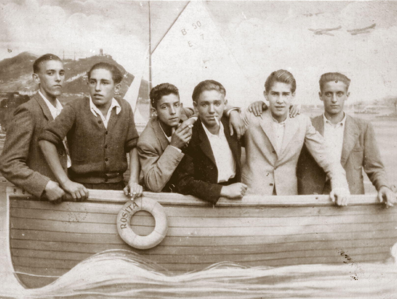 Donostian daudela ematen badu ere, argazkia Elgoibarren eginda dago. Hauek dira bertan agertzen diren herritarrak, ezkerretik eskumara: Rufino San Martin, Patxi Igartua, Roke Gabilondo, Andoni Etxebarria “Ondarru”, Juanito Gorostiza bera eta Jabier Zengotita.
