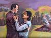'Tasio' filmean oinarrituta herriko bi artista egiten ari diren horma-irudia ezagutu du Patxi Bisquertek
