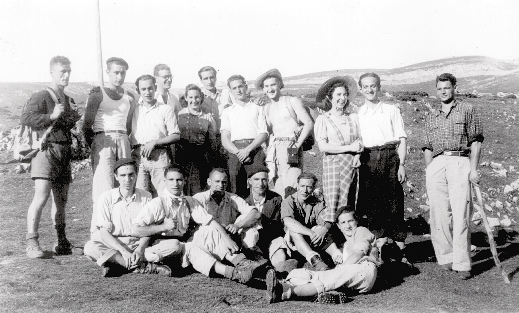 - Zutik, ezkerretik eskumara: Alberto Juaristi, Iñaki Konde, Bitor Rementeria, Julian Oteiza, Teodora Larreategi, ezezaguna, Jose Mari Mendizabal, Julian Azkue, Agapita Soroiz eta Juanito Arrieta senar-emazteak eta Rafael Mugerza.