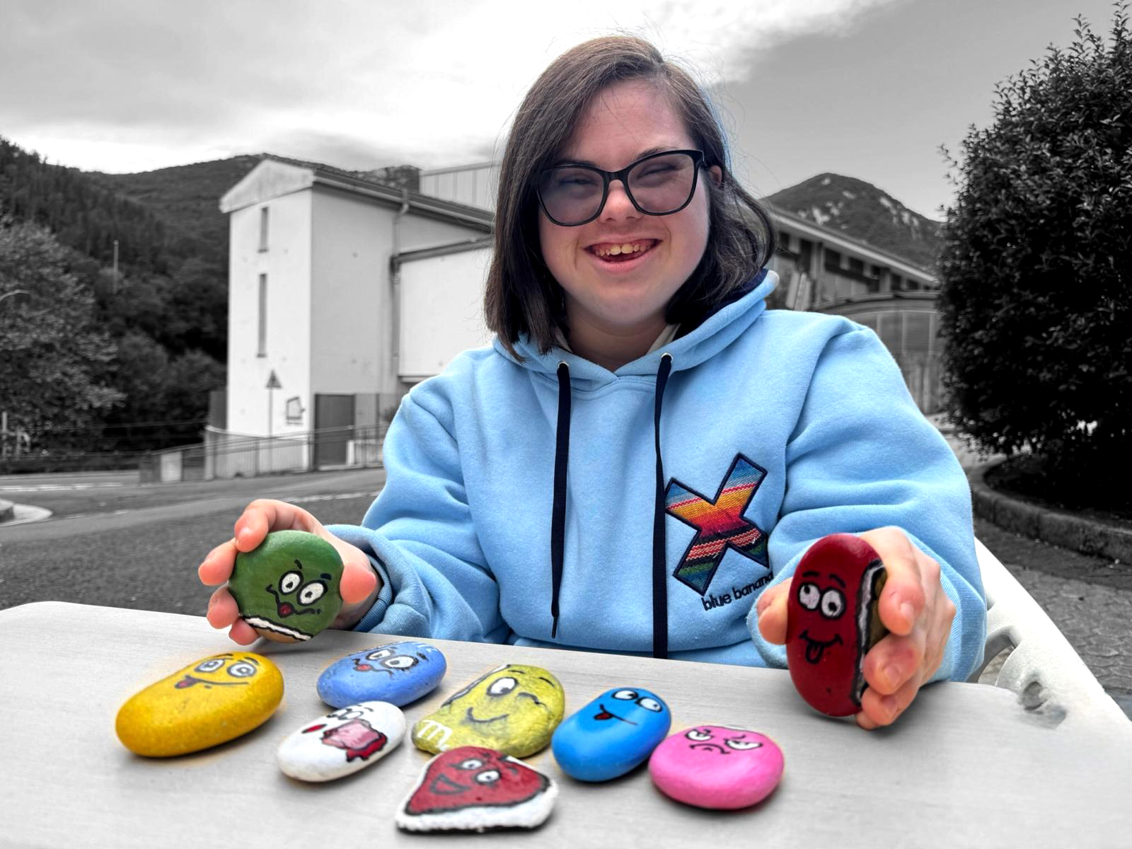 Oporretan egindako egonalditik ekarritako harriak dira Lazkanok margotu dituen gehienak, urak biribildutakoak, eta M&Ms goxokien itxura eman die guztiei, pintzel fina hartuta [2022koan Doraemon marraztu zuen haietan]. Ahoz komunikatzeko zailtasunak ditu Leirek, baina sormen gaitasun handia, eta asko entretenitzen da margotzen, "gosaldu behar duela ahazteraino behin hasitakoan", Kathe Muñoz amaren esanetan. Harena da ekimena. Kontatu du alaba pantaila aurretik kentzeko sortu zuela jolasa, Interneten ikusita. "Zerbait asmatu beharra geneukan denbora pasatzeko, bere adinkideak beste kontu batzuetara daudelako eta zaila duelako lagunak egitea. Eibarren dabil lanean, Gureak enpresan, eta garai batean Atzegiren Txolarte programan ere ibili zen, baina aspertu zen han eta orain hemen ibiltzen naiz zerbait asmatu nahian, etxetik irtetera bultzatzeko, lagaz gero sofan egongo litzatekeelako egun osoan. Harriak biltzeko aitzakian behintzat ibili egiten da, eta denbora betetzen dugu etxean", azaldu du amak. Alaba bezala ama ere zalea da, eta berak laguntzen dio harriei berniza ematen. Ezkutatu ere biek egin zituzten estreinako aldi hartan, baina oraingoan herriko nerabe kuadrilla batek ezkutatuko dizkie, faltako direlako eurek asteburuan Mendaron.